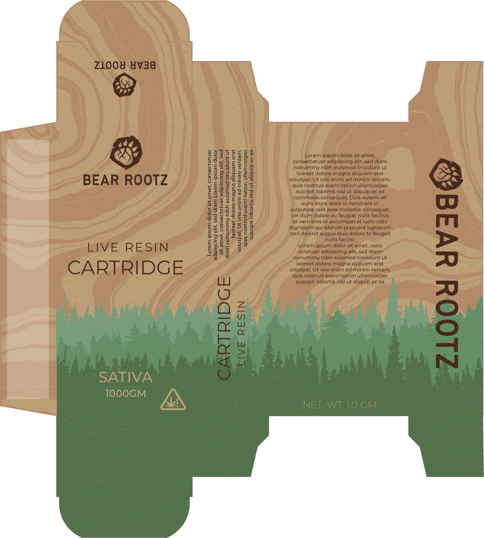Designed a Bear Rootz branded Cart Box Die line and mock-up.